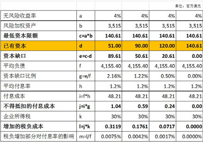 通过资本缺口,可以计算不允许进行税前抵扣的付息成本,主要计算如下: